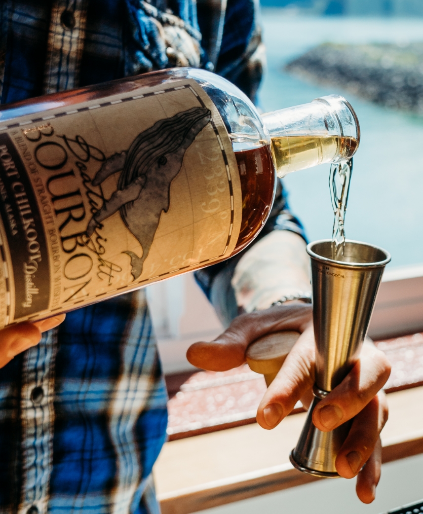 Made by hand in Southeast Alaska. With a touch of Kentucky. Crafted with the same attention to detail that a boat-maker brings to his trade, Boatwright Bourbon is a blend of two Straight Bourbon Whiskeys: Our own recipe, made completely from grain-to-barrel in our small craft distillery in Southeast Alaska, and a finely-made Straight Bourbon Whiskey from our friends in Kentucky. The character is so unique, and so local, it's like a postcard from Alaska. We worked hard to make this Boatwright Bourbon excellent. We hope you enjoy it.